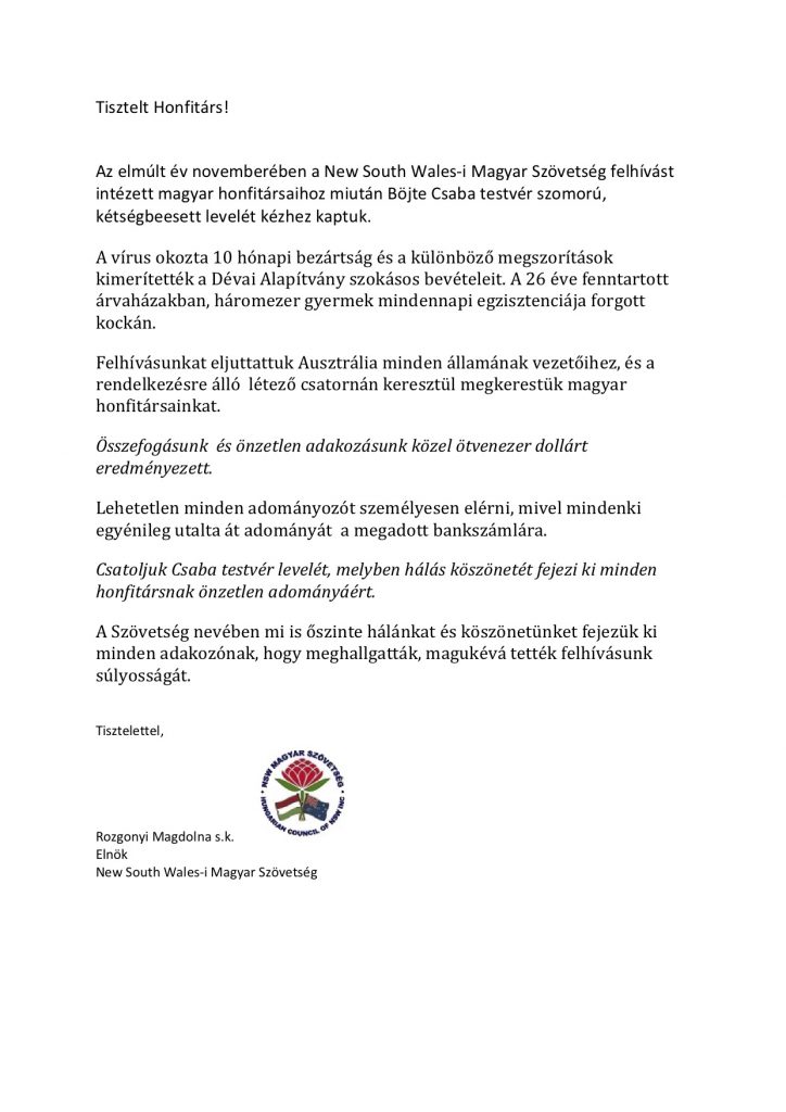 Magyarok élete Sydney-ben BÖJTE CSABA TESTVÉR KÖSZÖNETE február 24, 2021február 24, 2021 Magdi Rozgonyi 542 Views