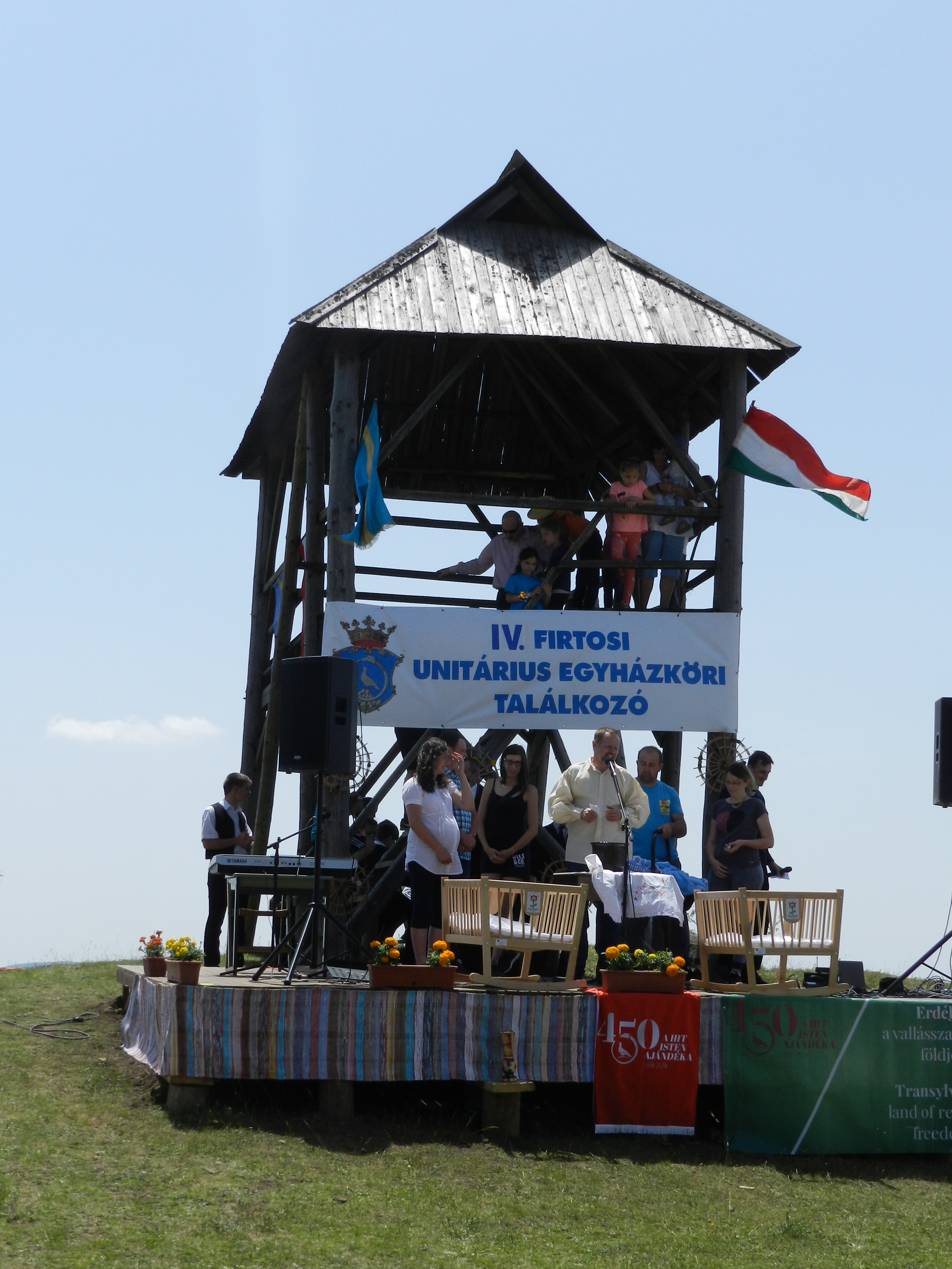 Szombaton az 1063 m magas Firtos-hegy csúcsa előterében megszervezett unitárius találkozó ünnepi istentisztelete után, a mintegy 15oo résztvevő jelenlétében 3 bölcső átadására került sor. A Kovács Gergelyné, Irénke által adományozott bölcsőt a Korond feletti Pálpatakára vitte el egy kéthetes kisbabával érkező házaspár, az Ausztráliából hazatért Soós Miklós bölcsője pedig Énlakára került hat hónapra. A harmadik bölcsőnek, amelyik Reisz Attila adományából készült, rendhagyó módon lelt gazdára, ugyanis a rendezvény kezdetekor még nem tudtuk, hogy ki viszi el. A beszédem alatt felhívást intéztem a közönséghez és felajánlottam egy bölcsőt egy olyan áldott állapotban lévő résztvevőnek, aki szívesen ringatná majd bölcsőben a gyermekét. A közönség soraiból hamar előkerült egy hegyesedő hasú asszonyka, aki nagy örömmel vette át a bölcsőt. Ő székelyudvarhelyi, de jelenleg Németországban dolgozik és ott fog ősszel szülni. A bölcsőt majd jövő nyáron Udvarhelyszéken adja tovább. Nemcsak a könyveknek, hanem a vándorbölcsőknek is megvan a sorsuk…